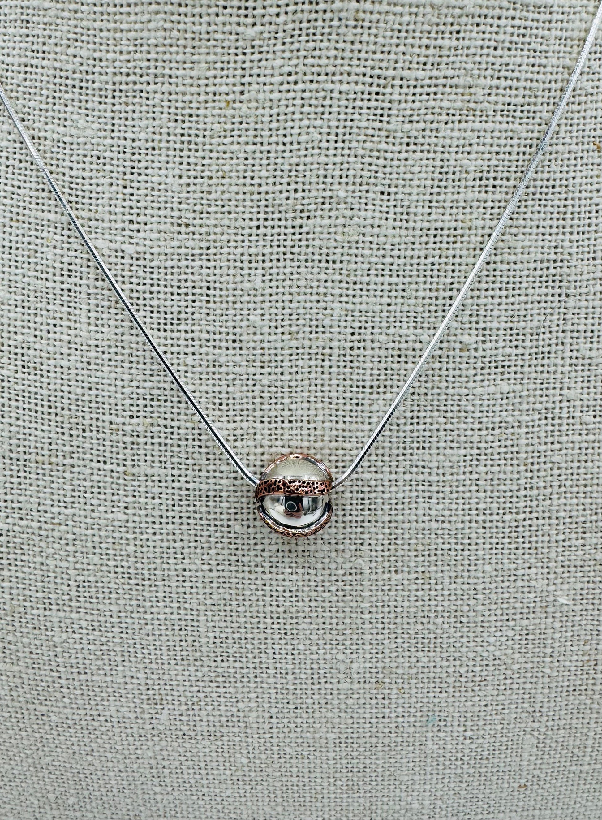Inspired by the concept of “one bead because we’re all one family,” this necklace looks beautiful worn on its own or layered with other pieces. A classic, this 10mm copper and sterling bead is attached to an 18” sterling silver chain with a sterling lobster clasp.