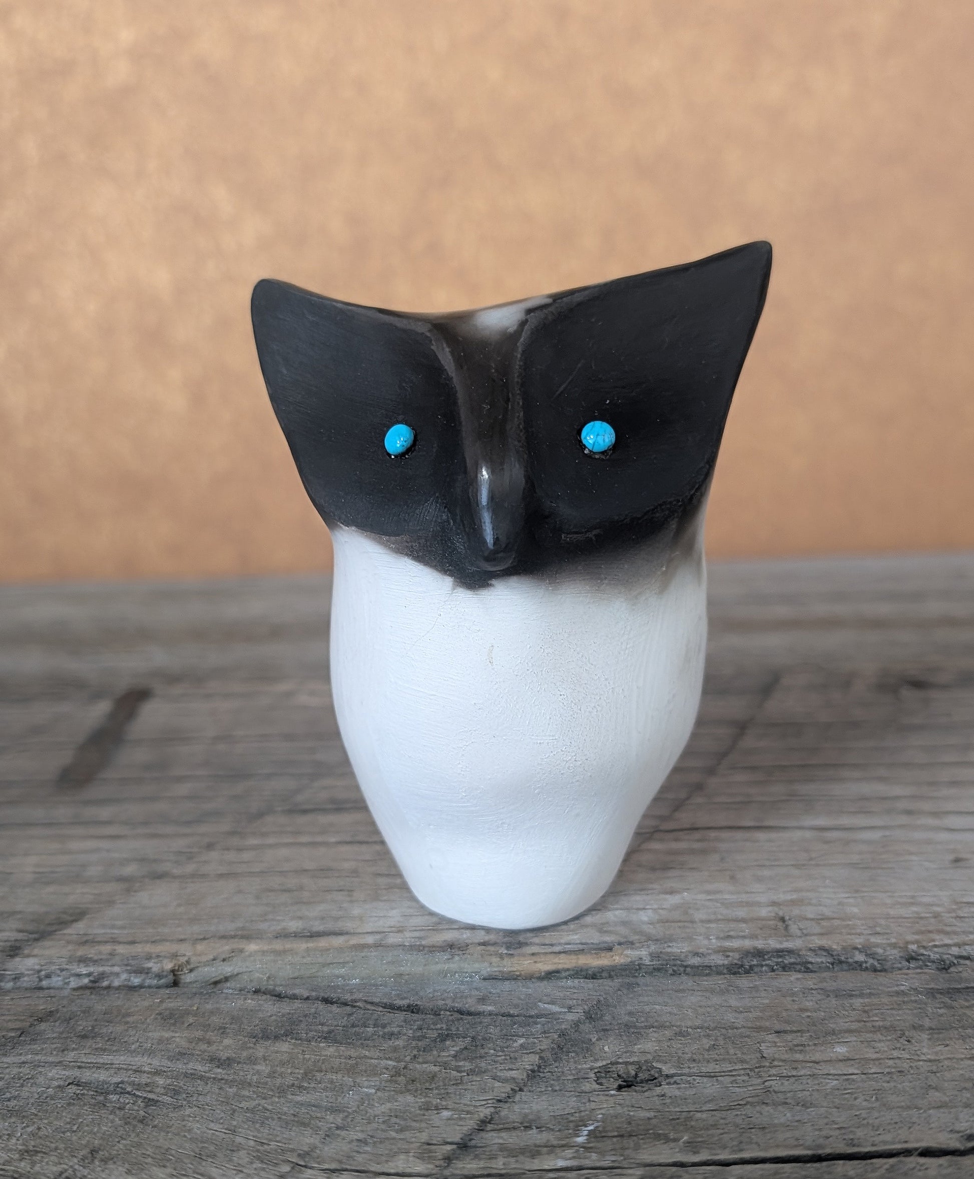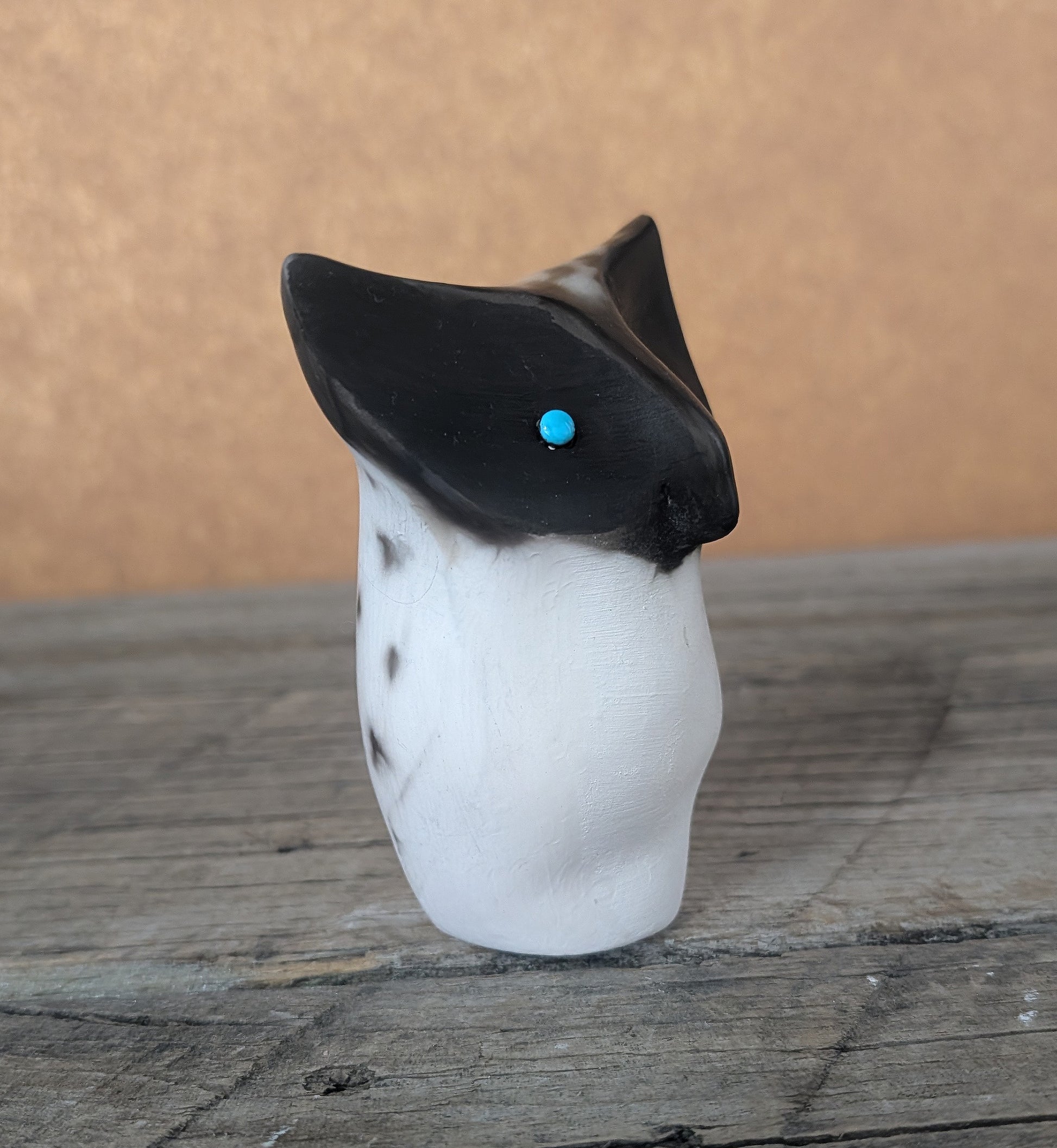 Smoke fired Owl with turquoise eyes