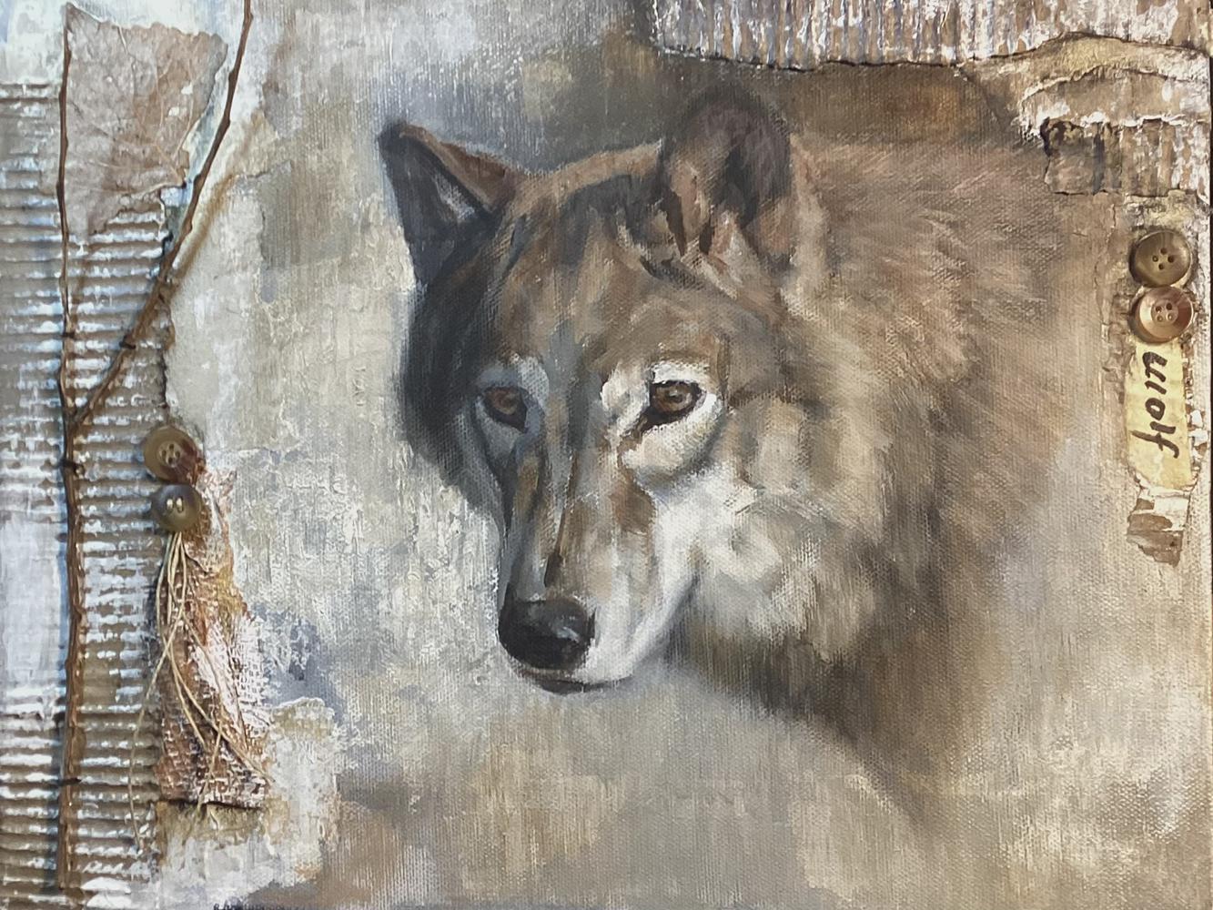 The celebration of the wildness and tenacity of the spirit of wolf. Mixed Media 11x14 Gallery Wrap